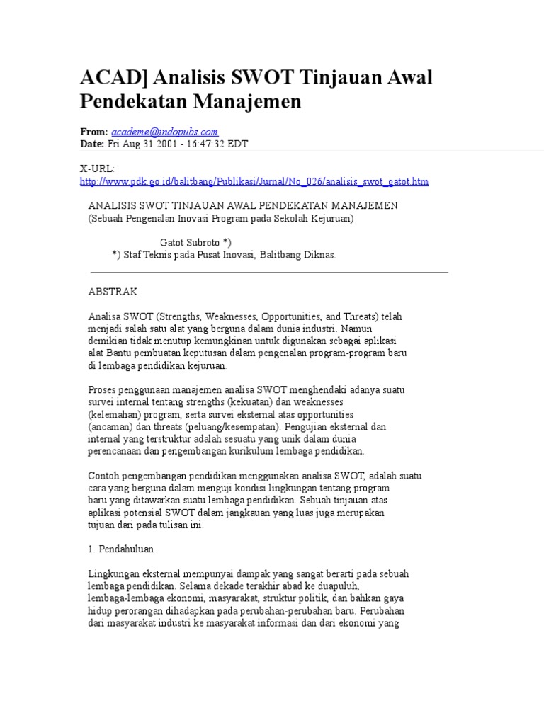 Contoh Analisis Swot Organisasi Pendidikan - Simak Gambar via superfighters.website